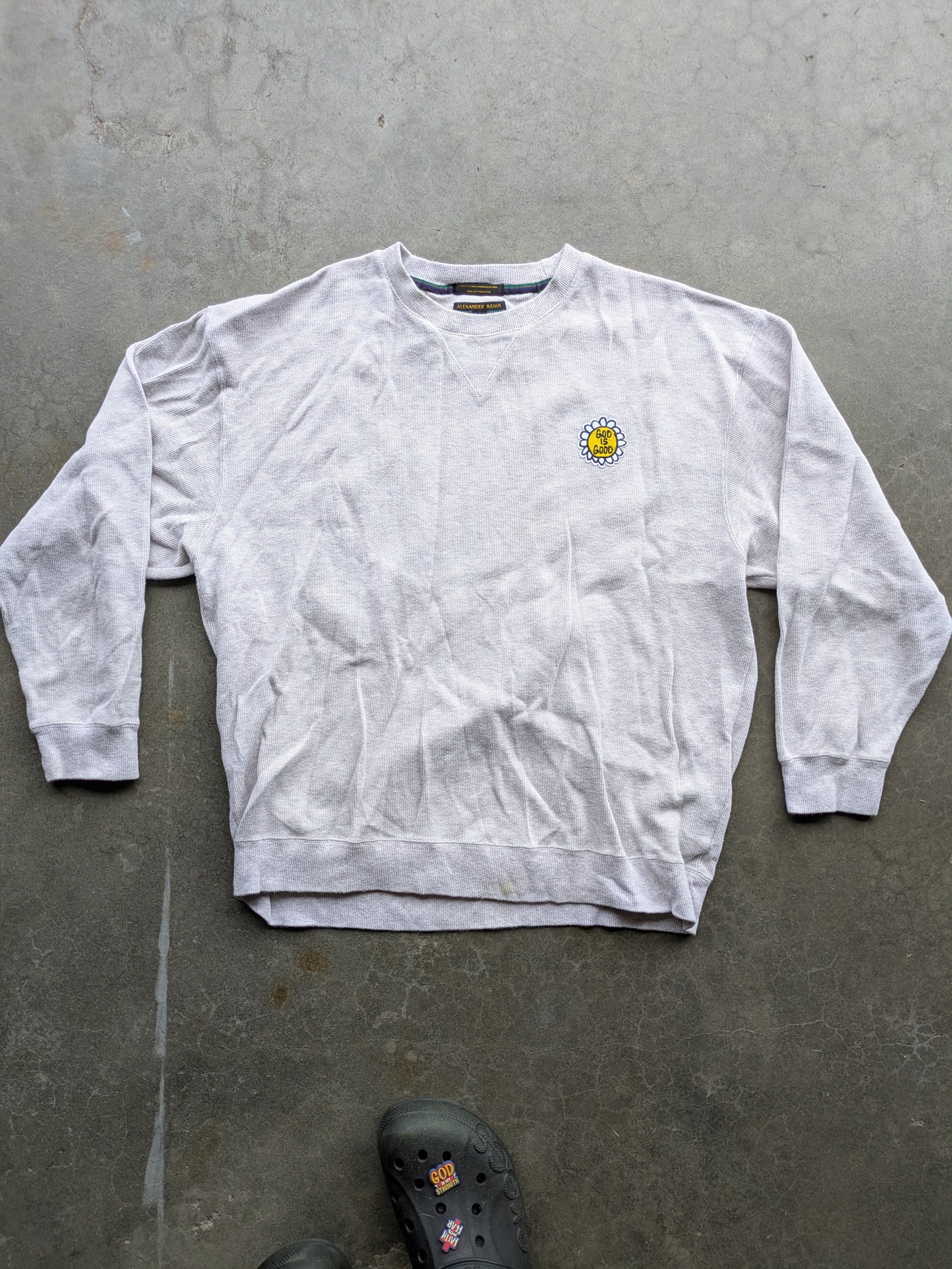 Custom Upcycled "God is Good" on VTG 90s Alexander Julian Grey Sweater Sz XL