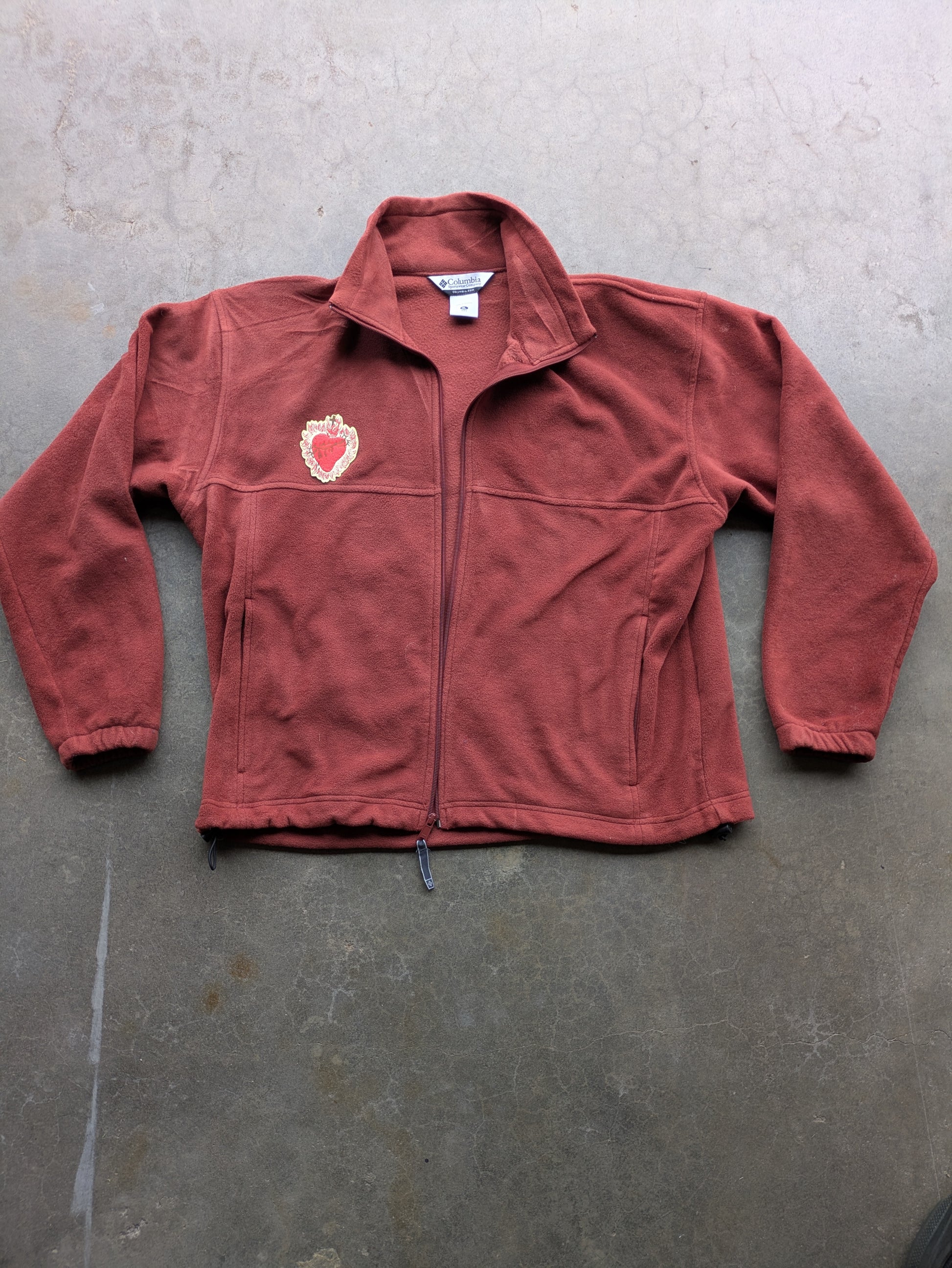 Custom Upcycled Maroon Colombia Fleece w/ Crucified Heart Patch SZ XL