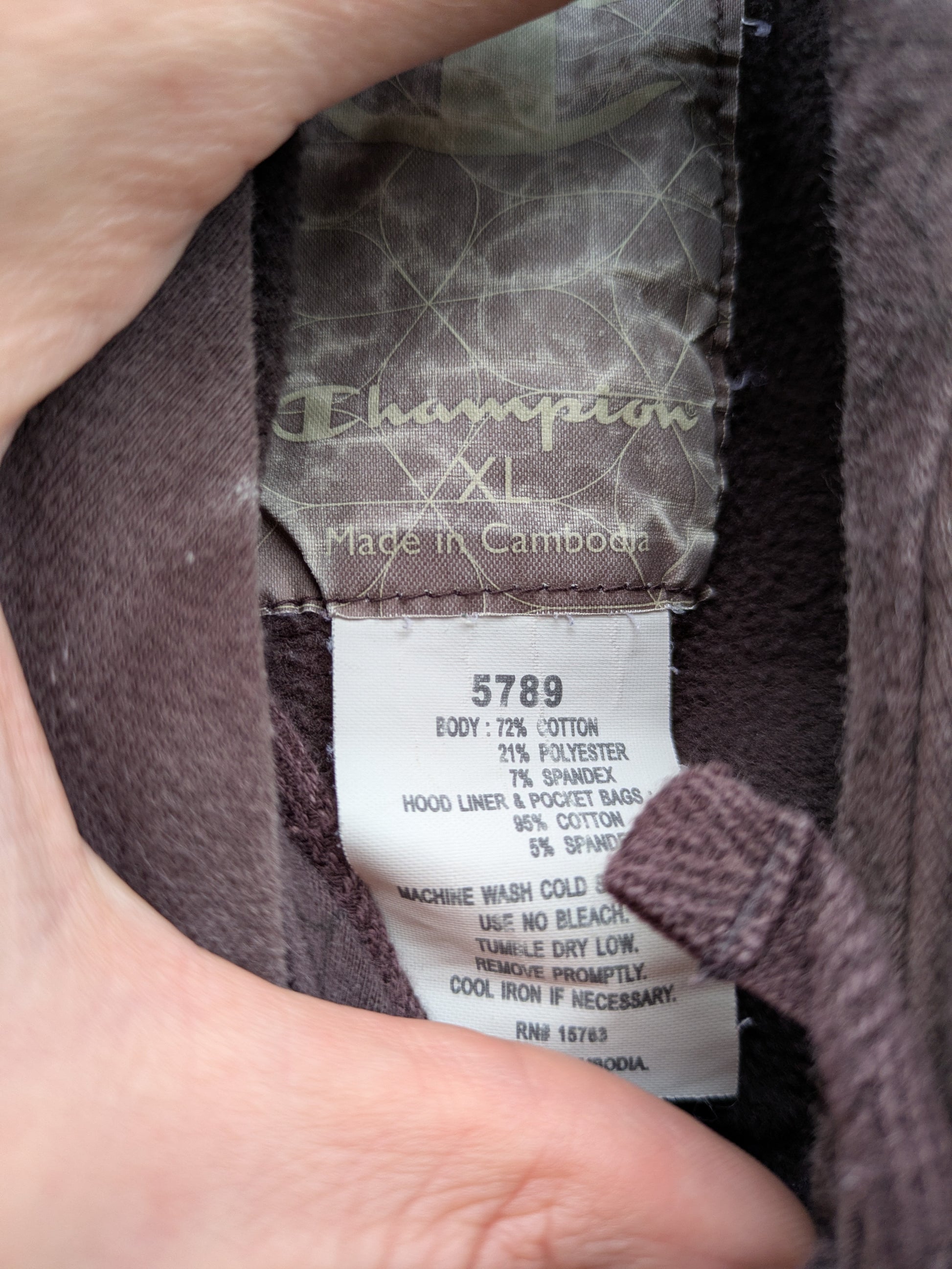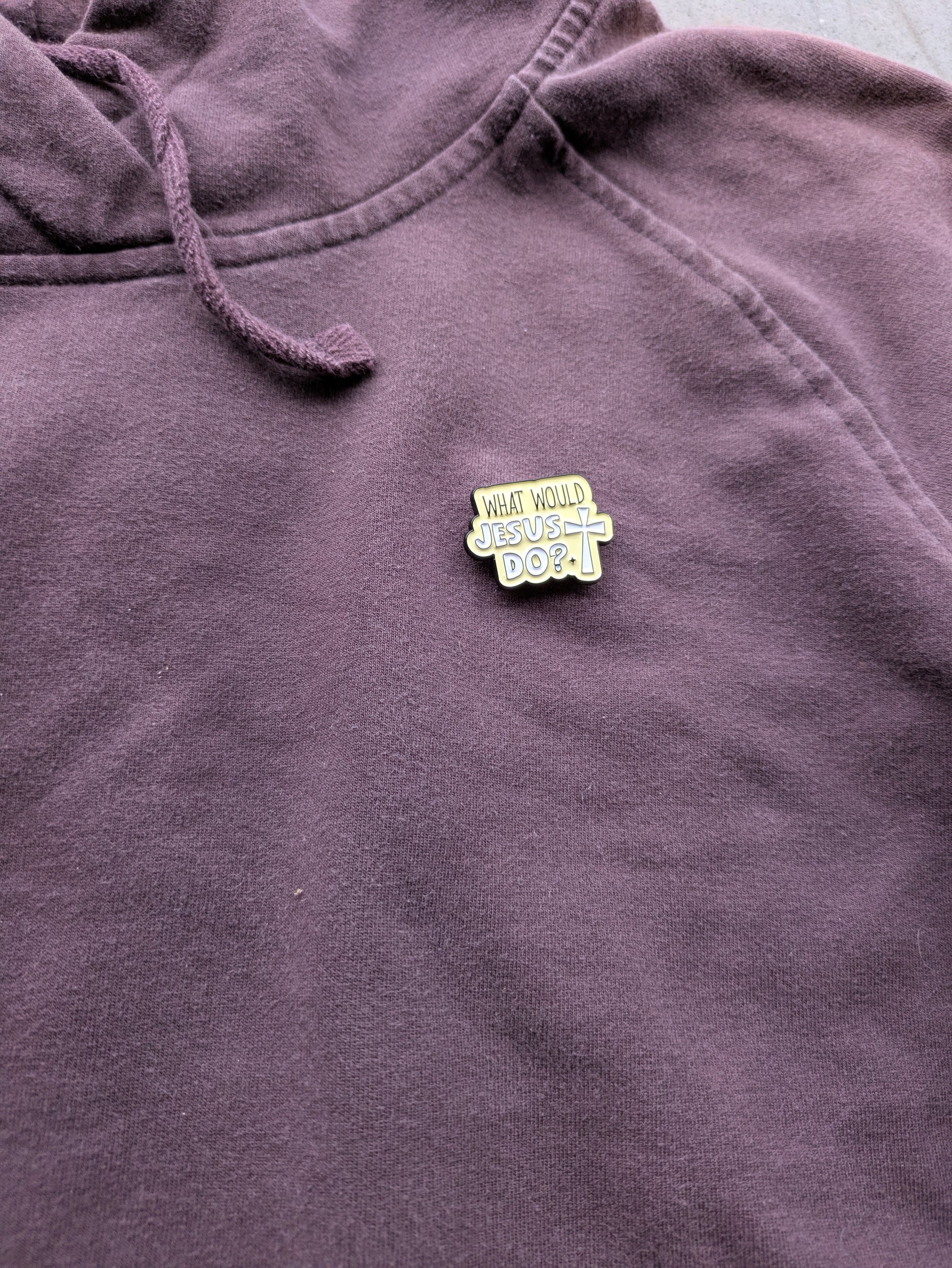 Upcycled Brown Champion Hoodie W/ "What Would Jesus Do?" Pin Girls Xl
